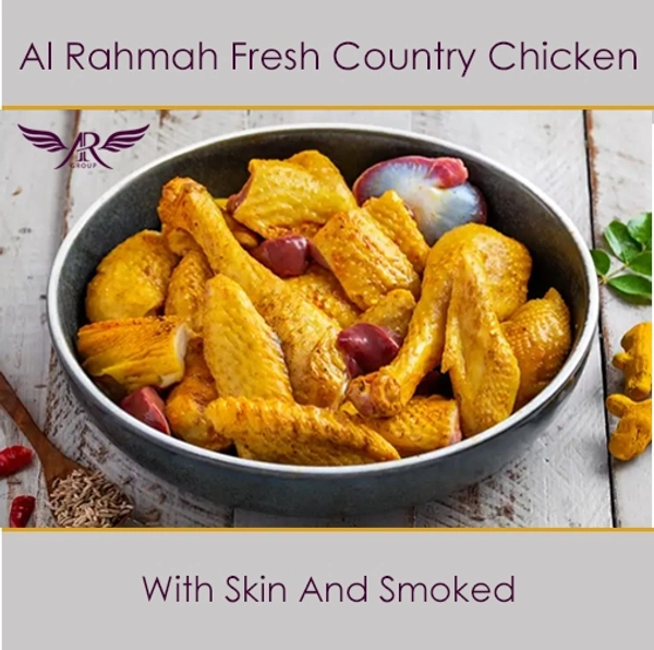 Free Range Country Chicken with skin. Smoked after applying turmeric. Free range Country chicken meat is an excellent source of amino acids. We all know that amino acids are the building block of our muscles. Studies suggest that higher protein intake is necessary to maintain bone mineral density.